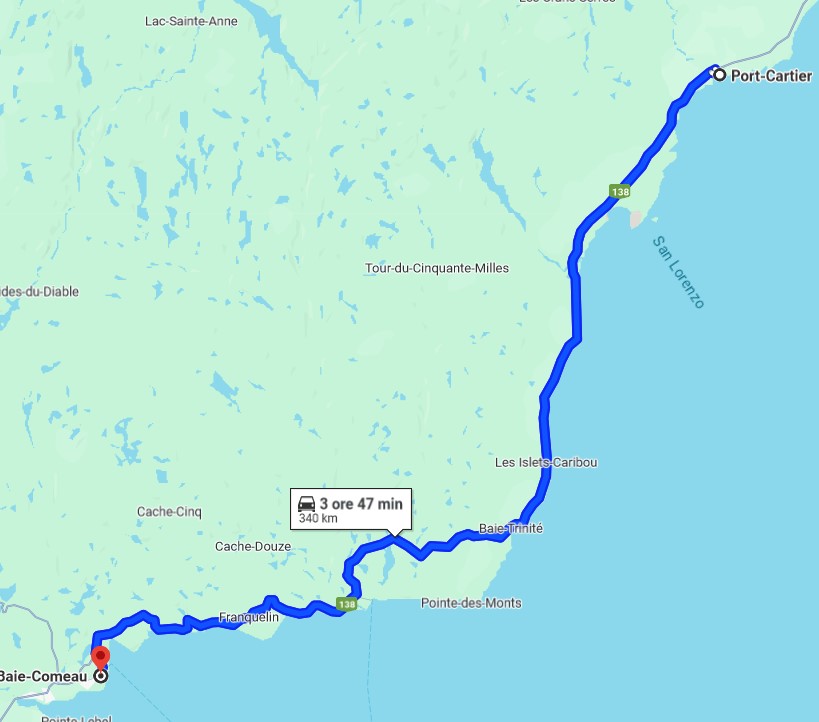 This was, once again, a very long journey again on gravel roads the most part, and in total some 400 km. We drove first along the East shore of Lac Saint-Jean and after along the River Saguenay to the South. Our final destination to spend the night was the Motel du Rosier in Baie-Comeau.