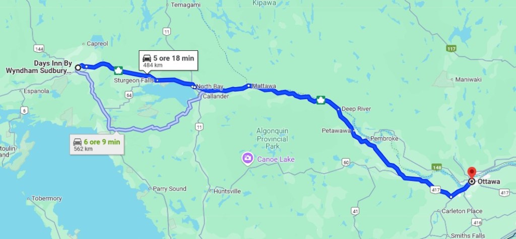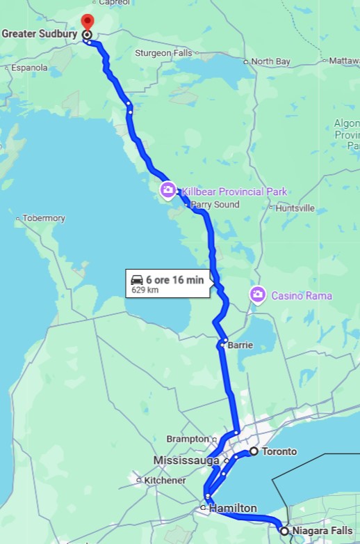 After an early breakfast, we departed from Toronto heading to the Niagara Falls (Canadian side). Many years ago I had seen these falls from the American side, but indeed from the Canadian side one appreciates their grandeur more. They were not at their maximum capacity, but in every way impressive to admire the force of the water whose deafening noise instills respect in you. We had a quick lunch there and after it, the trip toward Greater Sodbury took place solely on Trans-Canadian HWY N° 400, a comfortable highway with relatively little traffic. The landscape has changed quite a bit, giving way to small lakes, rivers, streams, bogs and marshes. Traveling further north, there are very few villages scattered in the wilderness. You must always keep an eye on the gas tank to avoid running out of gas! On this route, we passed hundreds of pickup trucks and cars and RVs that had canoes with them, reason why this is undoubtedly a resort region where Canadians spend their leisure time in cabins with access to the lakes, which are countless. After a total of 7 hours drive, we reached the Northbury Hotel and Conference – Sudbury. There, we had a couple bears and some snacks before going to sleep.