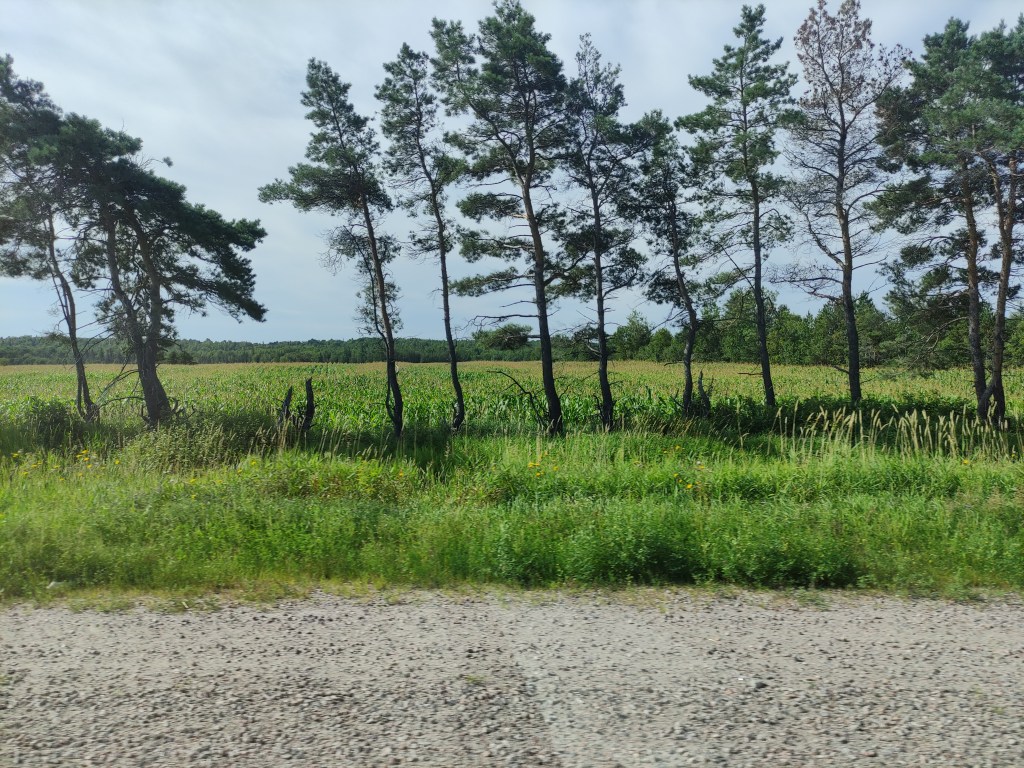 After breakfast a lovely breakfast at the Côtés B&B , we continued our trip on the HYW N° 108/8 East direction Napan and after we folded on N° 11 South through New Brunswick County coasting along the Konchibouguac Park and the last aside the ocean. The first part on 108 went through extensive forests (always with many road construction sites) but fortunately there was very little traffic. The second part f the trip, stretched through cultivated fields.
