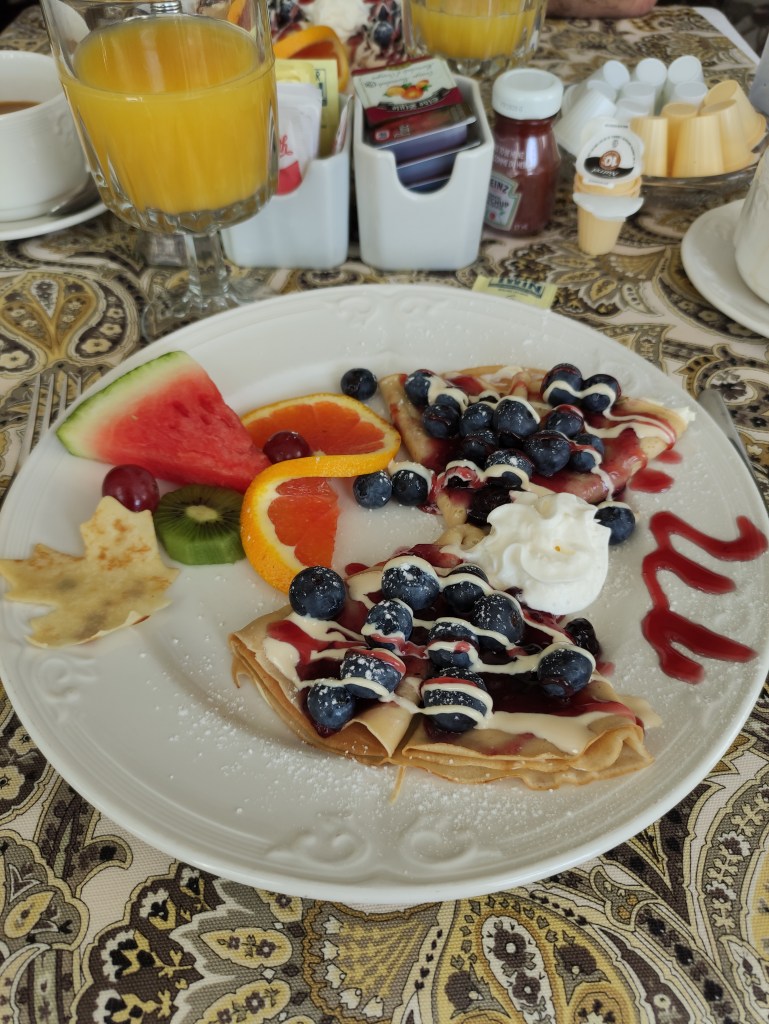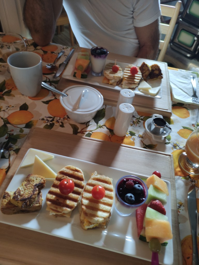 We had delicious crepes for breakfast at the Inn and then resume our journey. Now begins our “real” on-the-road adventure as we will no longer be visiting cities but will be in contact with the wilderness on roads that are not all paved, full of potholes and with a myriad of road construction sites. From the state of Ontario we return to Québec by crossing the Ottawa River, and then we headed north towards Lac-Saguay on the N° 317 and after again South on the N° 117 direction Saint-Donat-de-Montcalm and the final destination Saint-Côme. We were sorry we didn’t have more time to visit the parks as well, skirting the Réserve faunique de Papineau-Labelle, we imagined how exciting it might have been to spend a few nights in a cottage or go for walks. Also for this part of the journey, sensational and breathtaking was the succession of broadleaf forests initially and then dense coniferous areas with gloomy pine forests into which no light filtered. Although there were informative signs everywhere concerning the presence of elk and deer, we did not see any (alive) as they move when it gets dark. We took many more hours than Google maps indicated, precisely because of the bumpy roads. In the Hébergement La Belle Époque – St.Côme we were on our ownn with the whole appartment for us. I was very tired but Massimo took a little walk around.