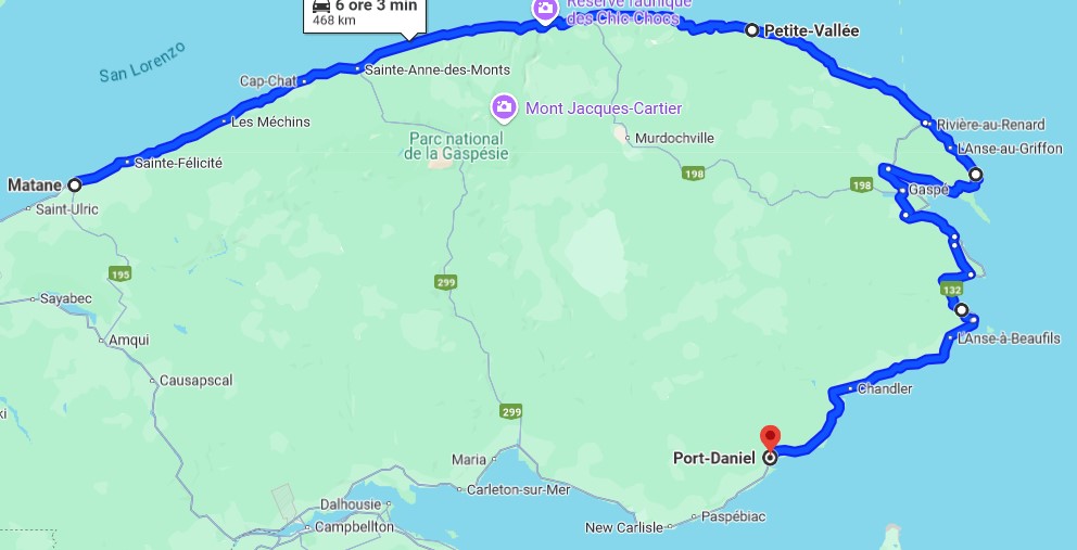 We had a quick caffée at the Auberge Bruine Océane, the journey from Matane to Port-Daniel was an up and down on slopes of 10-15% not properly passable and, again, with a lot of construction sites. It is possible that the condition of the roads so deteriorated over much of the Canadian territory is due to the harsh winter period where temperatures drop below freezing, ranging from -10° in winter to a maximum +20° in summer. We followed State Road No. 132 along the coast of the Gulf of St Lawrence from north to south and stopped at Mont St.Pierre for an ice creem.